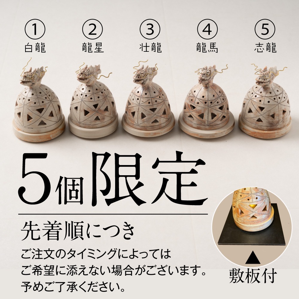 干支(辰年)の香炉 キャンドルホルダー -志龍 【5個限定】敷板付き 抱星窯