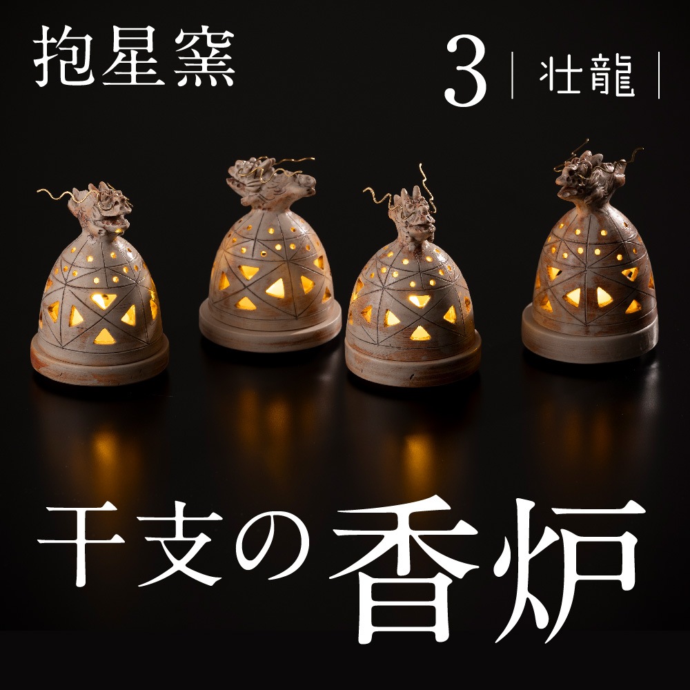 干支(辰年)の香炉 キャンドルホルダー -龍星 【5個限定】敷板付き 抱星窯