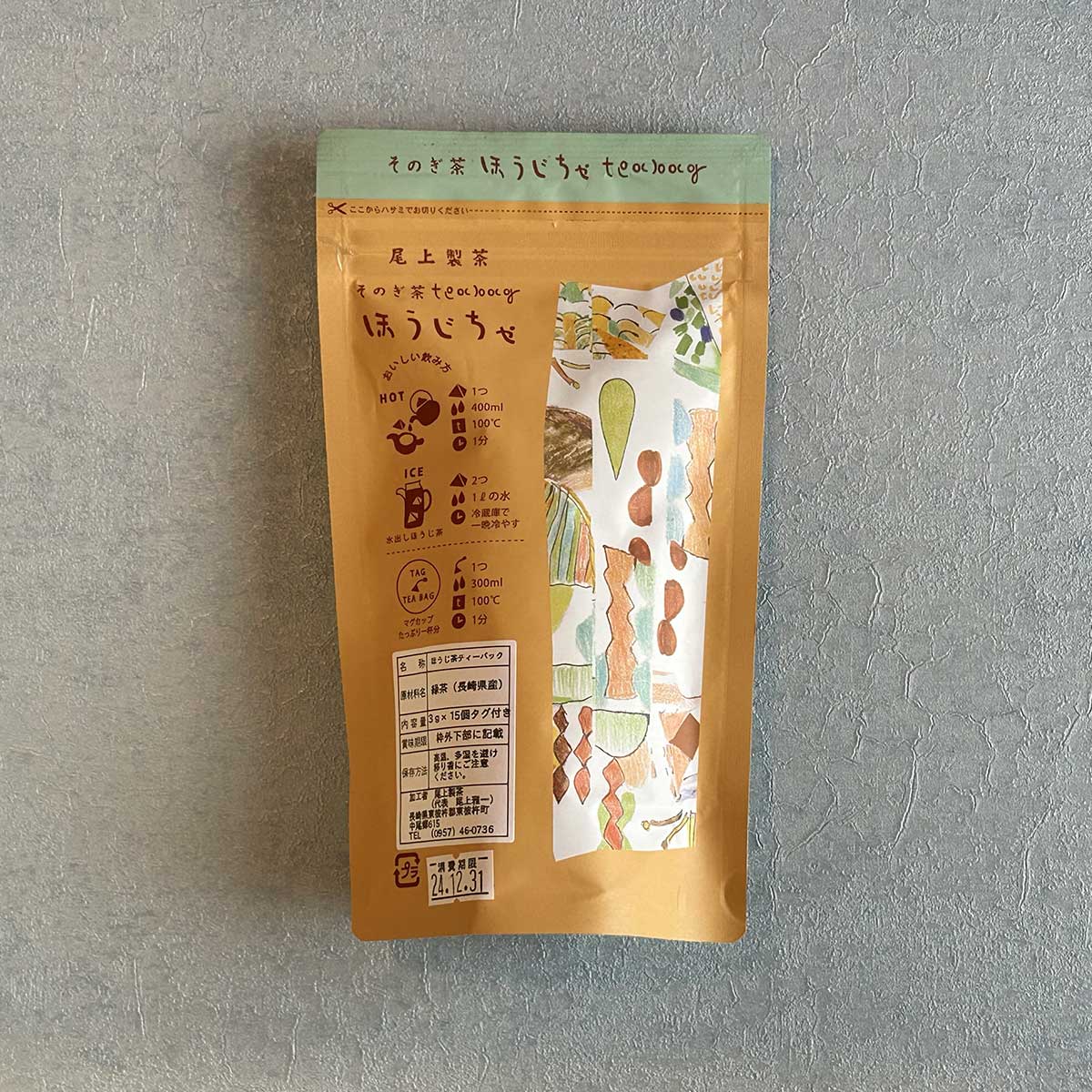●名称:ほうじ茶ティーバッグ ●原材料名:茶(長崎県東彼杵産) ●内容量:3g 15P ●賞味期限:別途商品ラベルに記載 ●保存方法:常温 ●製造者:尾上製茶