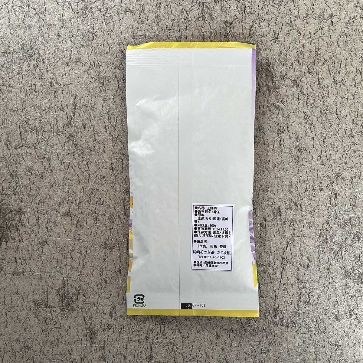 ●名称:特選たまりょく茶 ●原材料名:茶(長崎県東彼杵産) ●内容量:100g ●賞味期限:別途商品ラベルに記載 ●保存方法:常温 ●製造者:たじま屋
