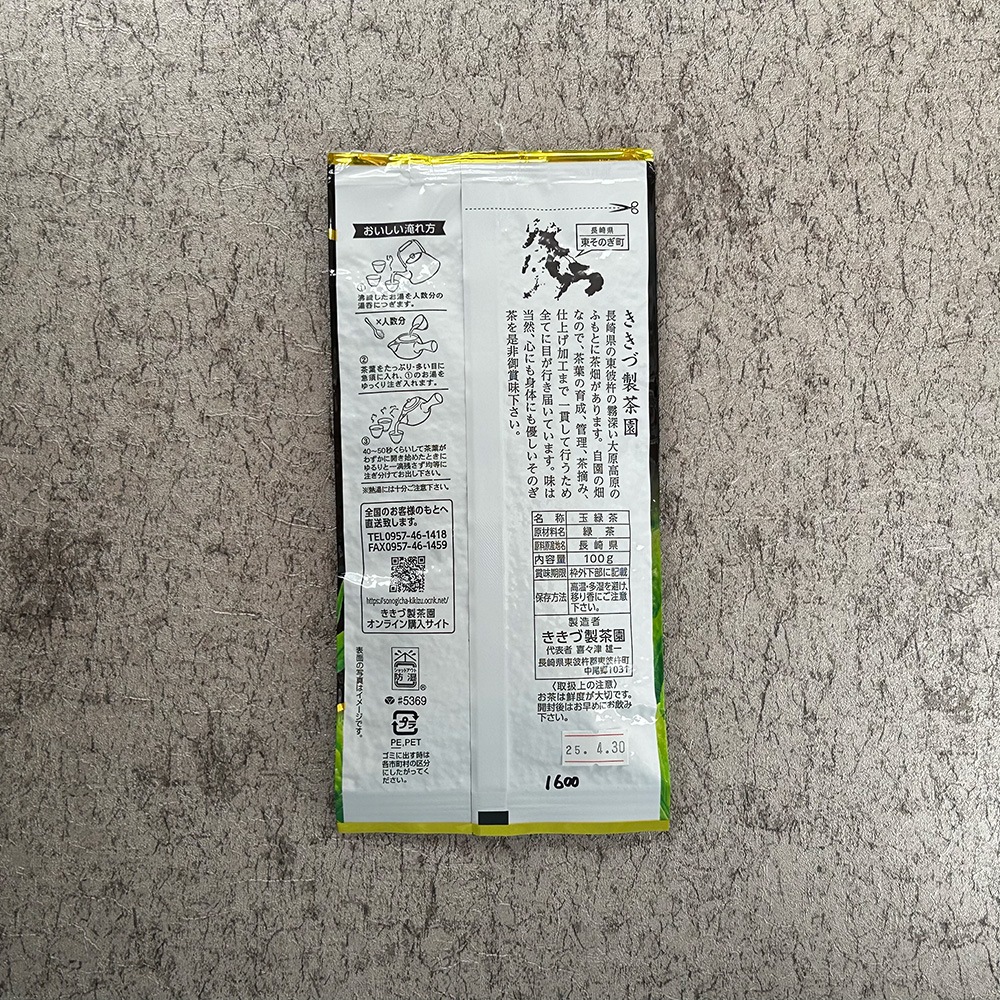 ●名称:極上 さえみどり ●原材料名:茶(長崎県東彼杵産) ●内容量:100g ●賞味期限:別途商品ラベルに記載 ●保存方法:常温 ●製造者:ききづ製茶園