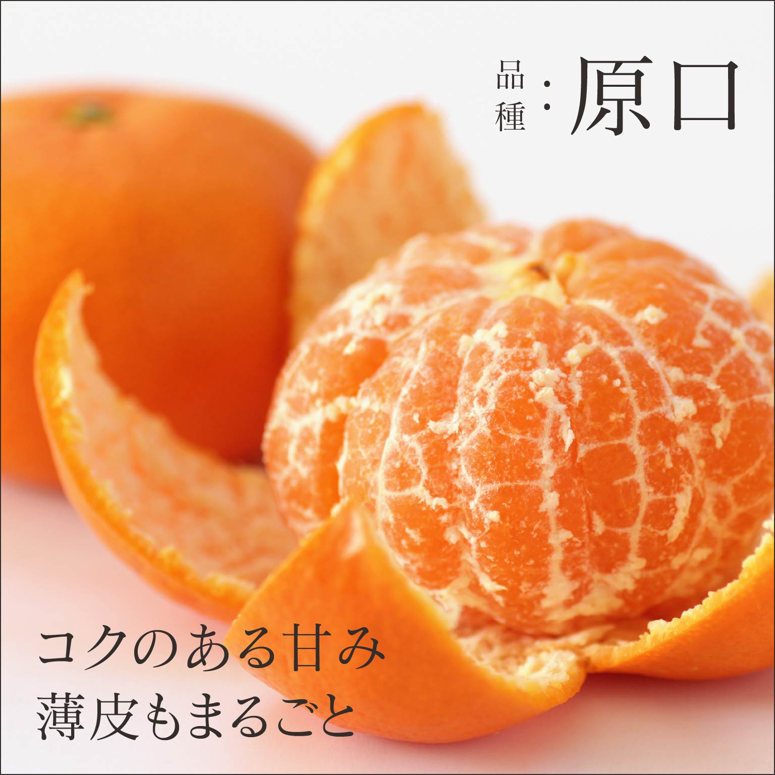 小ぶりでとっても甘く、薄皮が薄いのでそのままむかずに食べられる!コクのある濃厚な甘みが人気の「原口」は、なんと長崎県生まれ。早生みかんの定番品種「宮川」の変異種として、西海市(大村湾を挟んで、東彼杵町の対岸)で誕生しました。