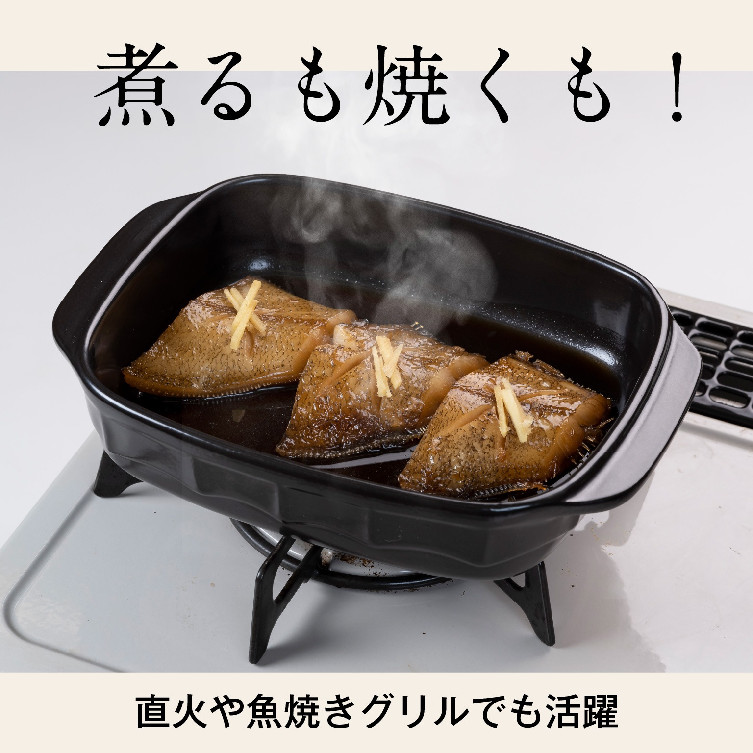耐熱セラミックスによる遠赤外線効果で、食材を芯から効率よく加熱。さつまいもやお肉、魚など分厚く熱が通りにくい食材も、しっかり火を通して型崩れしにくく、美味しく仕上げます。